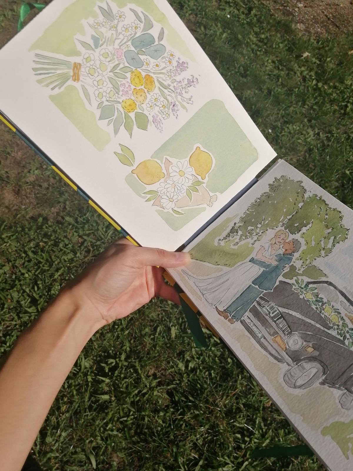 Carnet illustré réalisé pour le mariage de Cannelle et Léo :